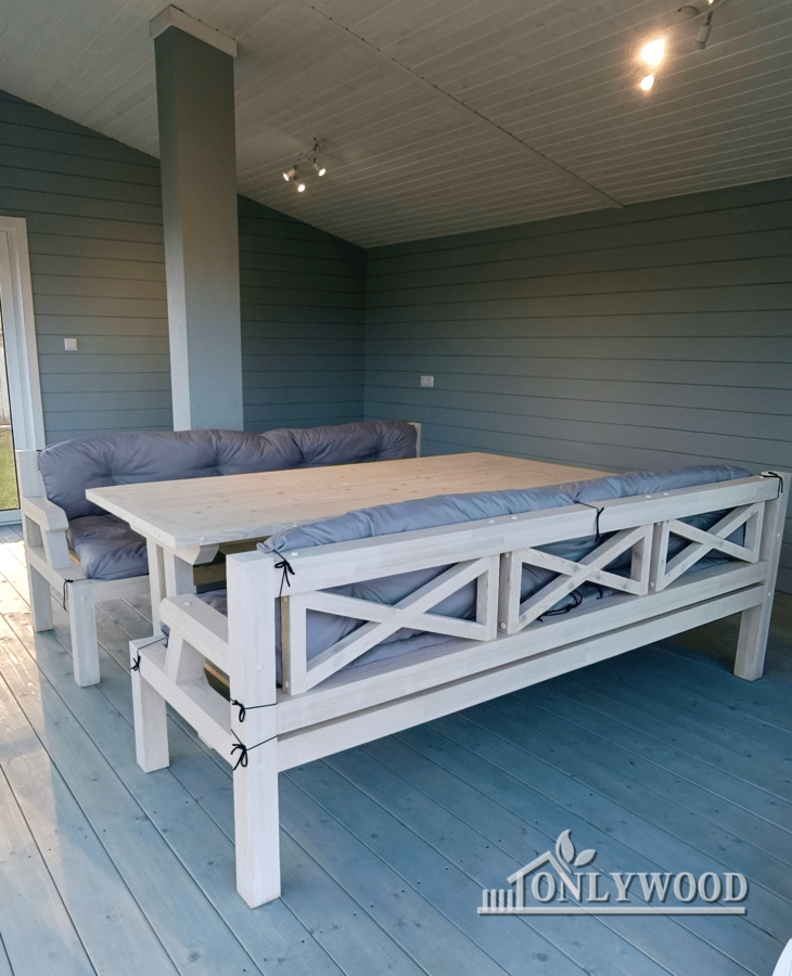 Диван для террасы с подушками из непромокаемой ткани Оксфорд 210 см – 2 шт