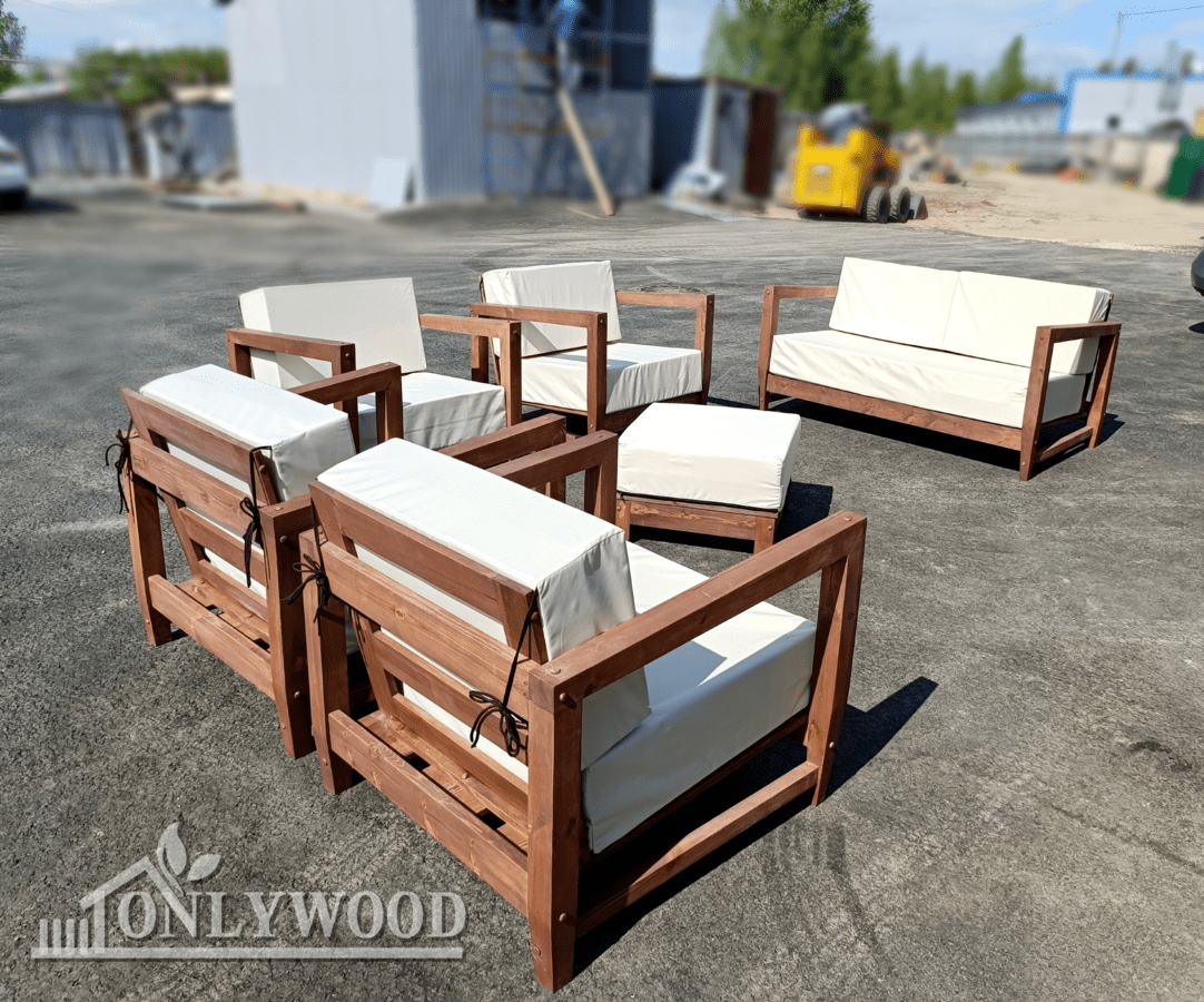 • Садовая мебель с подушками из водоотталкивающей ткани.